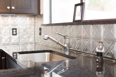 Here at American Tin Ceilings, we’re happy to tell you that tin tile as a backsplash could not be easier to clean. Even with regular oil or grease splatters from cooking in the kitchen, or moisture buildup after a bubble bath, keeping your tin tile looking good is easy.