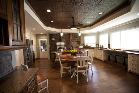Old BronzeKitchen tin ceiling tile installation.